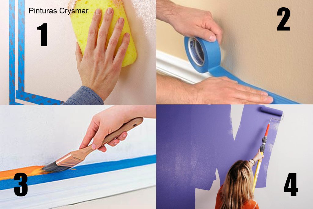 Asegúrese de utilizar cinta en las esquinas de las ventanas, marcos y puertas, así evitaras malos recortes. Retire la cinta inmediatamente después de la pintura, antes de que se seque la pared, para que no se desprenda la pintura con ella.